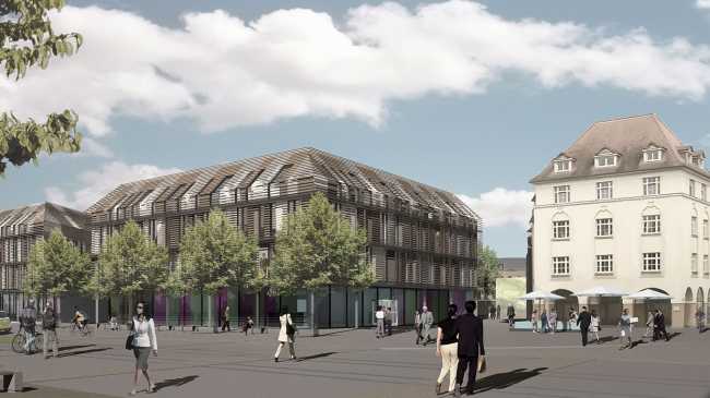„PALAIS AM GUTSPARK“ – Neubau eines Wohn- und Geschäftsgebäudes Ziel ist es, im Zusammenwirken mit den vorhandenen Strukturen den Impuls für ein neues funktional und atmosphärisch hochwertiges Stadtzentrum zu geben. Durch die Nachverdichtung können die vorhandenen großflächigen, wenig differenzierten Freiräume (Gutspark, Stadthallen-Vorplatz, Campus) zoniert und neu qualitätvoll miteinander verknüpft werden. Das Gebäudeensemble besteht aus 2…