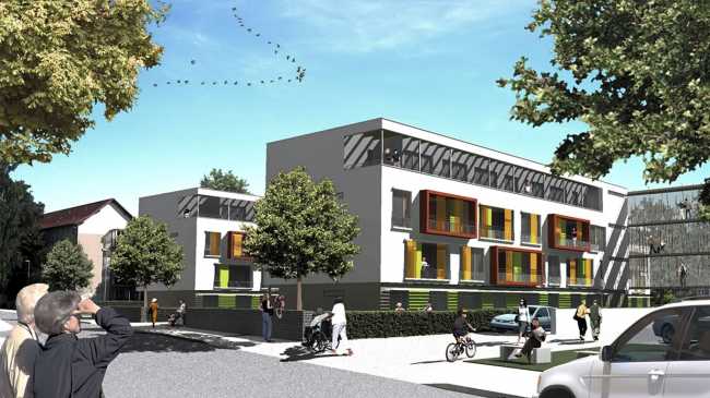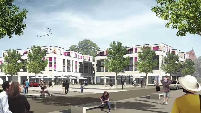 WOHNANLAGE „EHEMALIGES LEHRLINGSWOHNHEIM“ – Städtebauliches Gutachterverfahren Zentraler Gedanke des städtebaulichen Konzeptes ist die Schaffung einer Wohnanlage, deren Gebäudestruktur sich in Richtung Innenstadt öffnet, die auf dem Grundstück der Kreisvolkshochschule erweiterbar ist und sich dadurch mit den südlich benachbarten Strukturen an der Konrad-Martin-Straße verzahnen kann. Die Wohnnutzungen sind kleinteilig in Gebäuderiegeln organisiert, deren Wohnungen ost-west-ausgerichtet sind.…